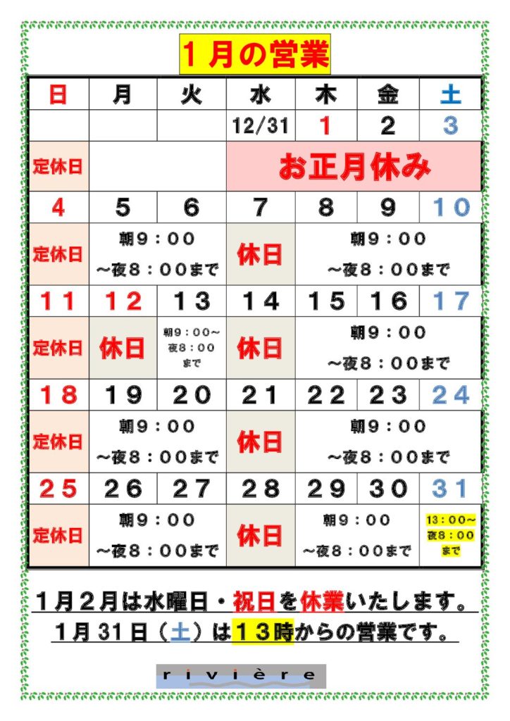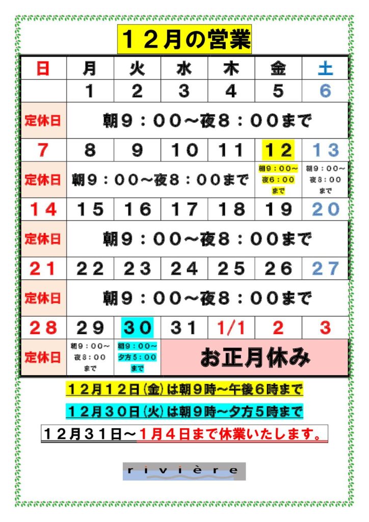 営業時間:月曜日~土曜日 朝9:00~夜8:00